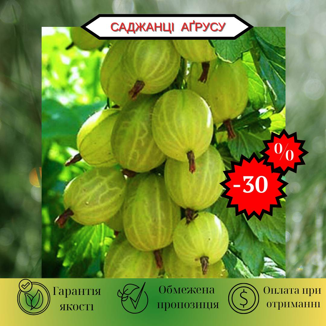 Термін дозрівання: урожай агрусу дозріває на початку серпня; Висока врожайність: з 1 куща можна отримати до 5 кг плодів.Стійкість до хвороб: добре переносить борошнисту росу та антракноз. Великі солодкі ягоди: зеленого кольору ягоди масою до 6 г;Морозостійкість: витримує морози до -25°C без укриття.Універсальність у використанні: підходить для свіжого споживання, варення, соків і заморожування.